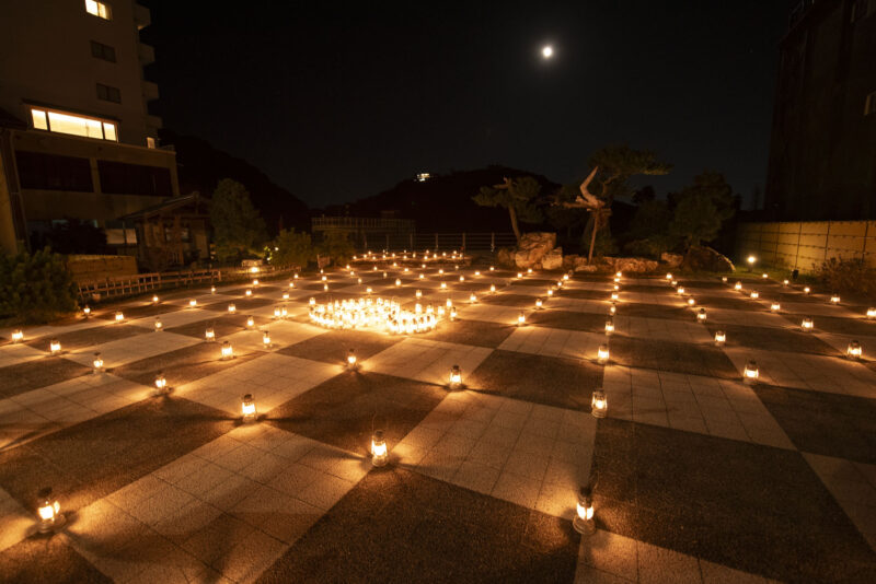 低く大きな月の夜、久しぶりに舘山寺門前広場で舘山寺ランタンプロジェクトを開催しました。