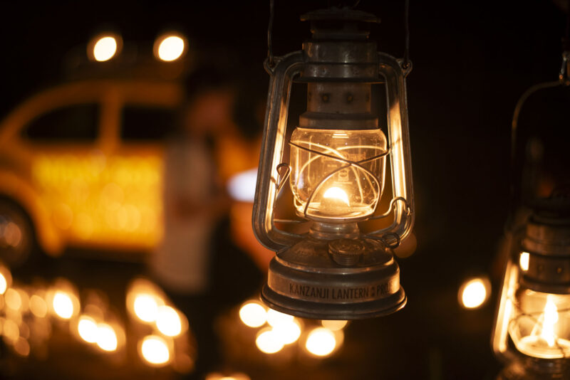 本日のランタン点灯は193台。来場のお客さんも自分でランタンを点けた後、写真を撮ったり、ビートルに投影の「NIGHT ZOO」の前で写真を撮ったり、映えるフォトスポットになりました。