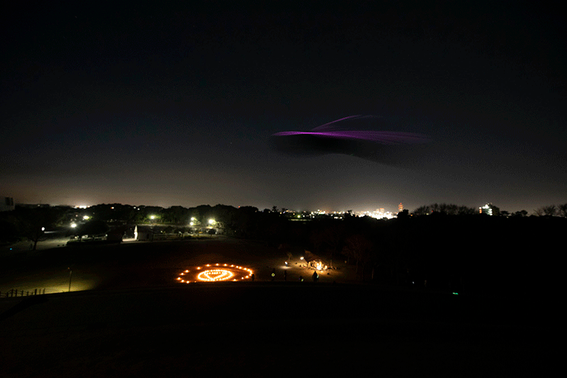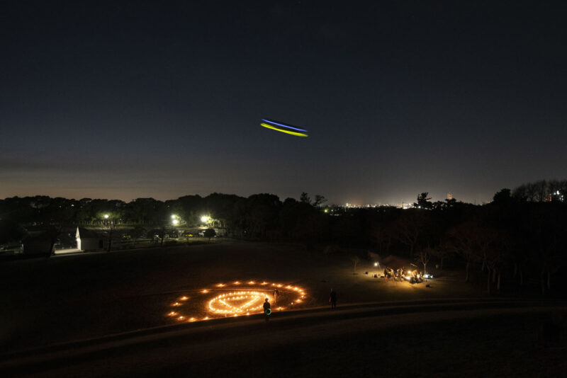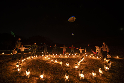 舘山寺ランタンプロジェクトのテーマとして「防災の啓もう活動」があり、14日の夜に行われた「UFO現る!」イベント内でUFO召喚魔法陣をランタン97台で描き、防災のコミュニケーション活動を演出してきました。