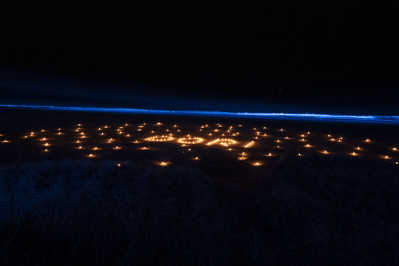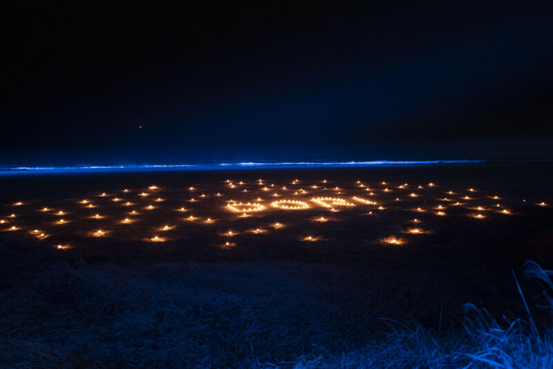 今年は点灯場所が海岸に。運営のみなさんと当日お話しして「DORI」の文字を描こうということに。