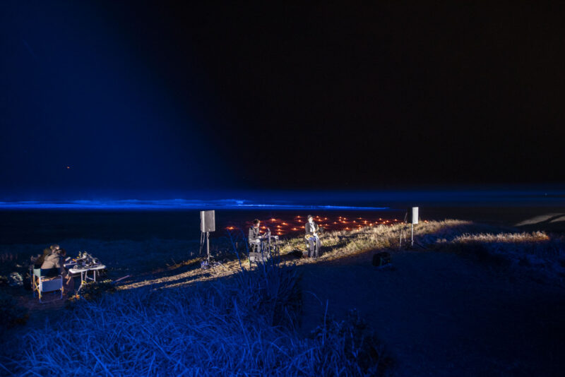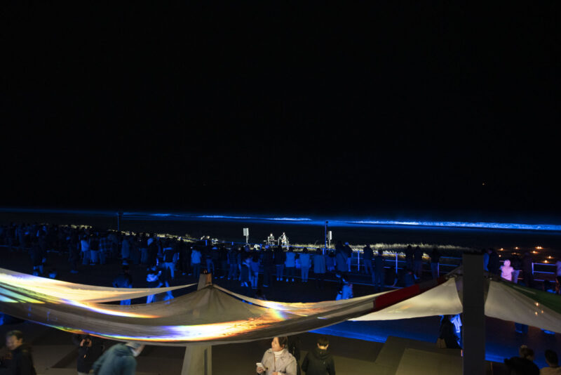 そして、波をブルーに照らすプロジェクションマッピング。前でライブの演奏もあり、多くのみなさんが訪れていただき、天気もよく、大変盛り上がるイベントとなりました。